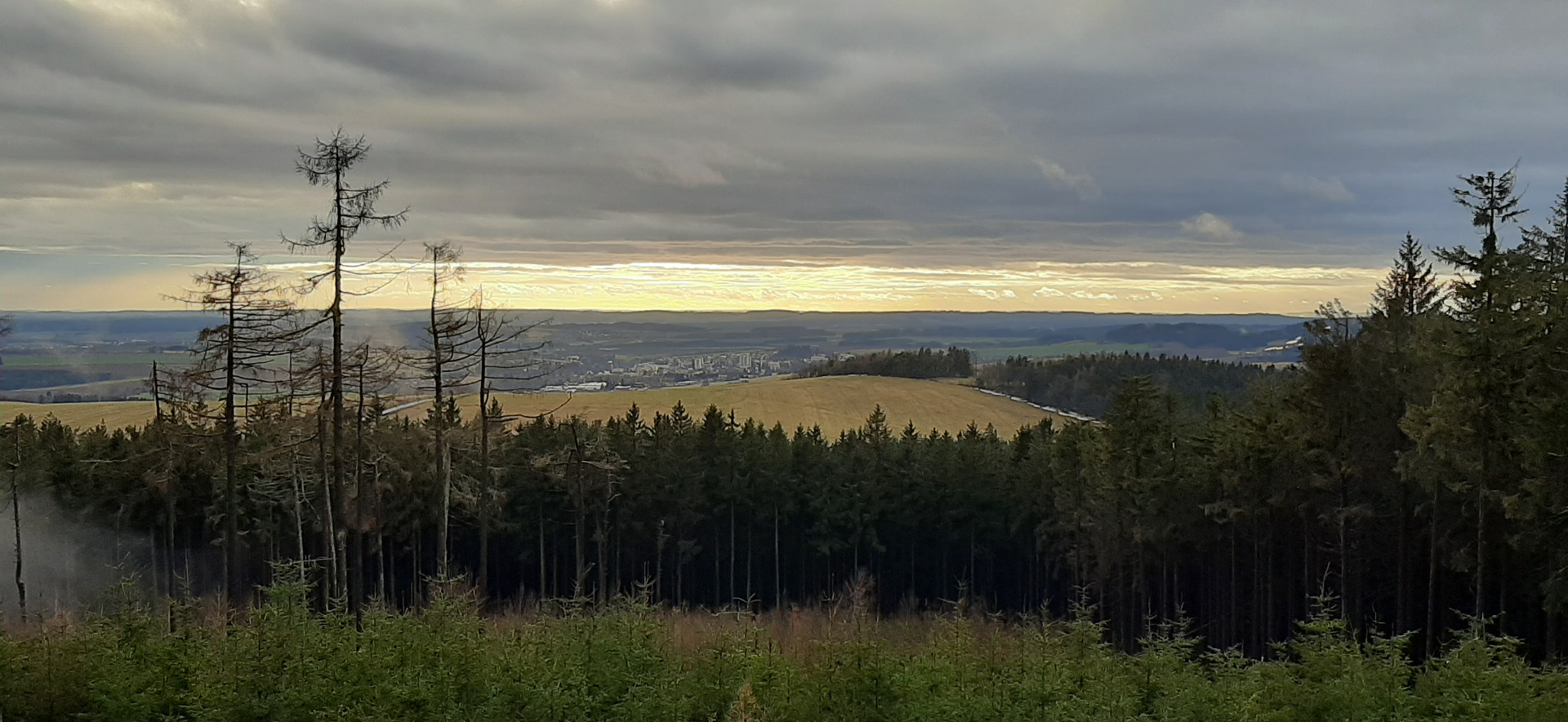 Kousek po hřebeni směrem na sever od skal jsou mýtiny odkud je i výhled na opačnou stranu.
